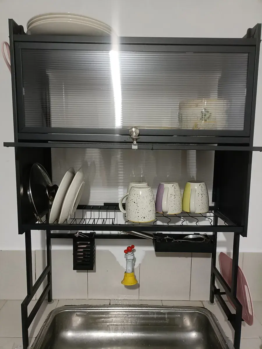 “¡Una maravilla! Mi cocina siempre estaba llena de platos y vasos por todos lados. Ahora todo queda organizado, seco y protegido. El gabinete es lo mejor, nada se llena de polvo.”